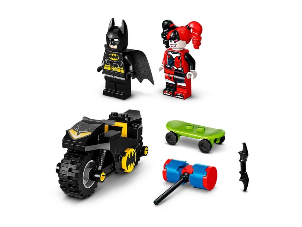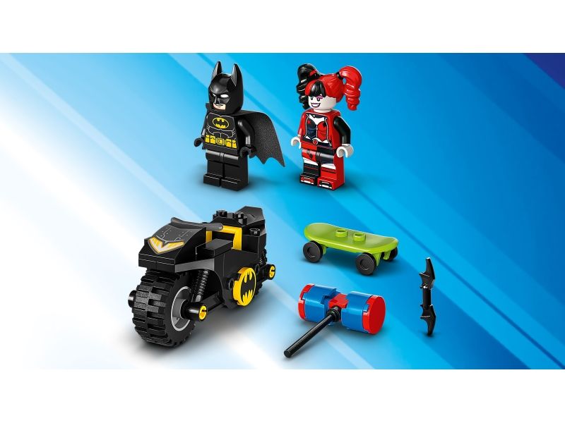 Der beste Start für junge Superhelden Dieses Action-Spielset beinhaltet 2 beliebte Charaktere aus den DC Superhelden-Filmen: Batman sitzt auf seinem rasanten Batcycle™ und Harley Quinn fährt auf ihrem Skateboard und hält einen riesigen Hammer in der Hand. LEGO 4+ Sets strotzen vor faszinierenden Details, die Kindern das beste Spielerlebnis bieten. Jeder Steinebeutel in der Box enthält ein vollständiges Modell und eine Figur, die Kinder rasch zusammensetzen, um sofort spielen zu können. Nicht nur ein großes Starter-Bauelement erleichtert das Bauen des Motorrads, sondern auch die intuitive Bauanleitung in Form einer farbenfrohen Bildergeschichte.