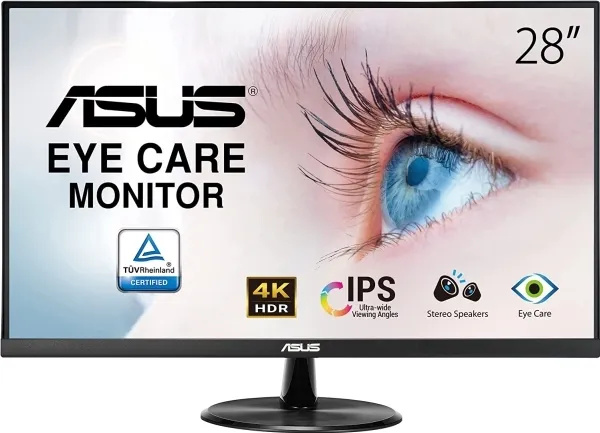 ASUS VP289Q eye care monitor features 28-inch 4K UHD (3,840 x 2,160) with IPS 178° wide-viewing-angle, it delivers sharp, detail and immersive viewing experience. 90% DCI-P3 provides realistic colors and smoother gradation. To achieves seamlessly smooth gameplay, VP289Q with Adaptive-Sync technology to eliminate screen tearing and enhances image details in dark areas. In addition, ASUS Eye Care technology ensures a comfortable viewing experience.