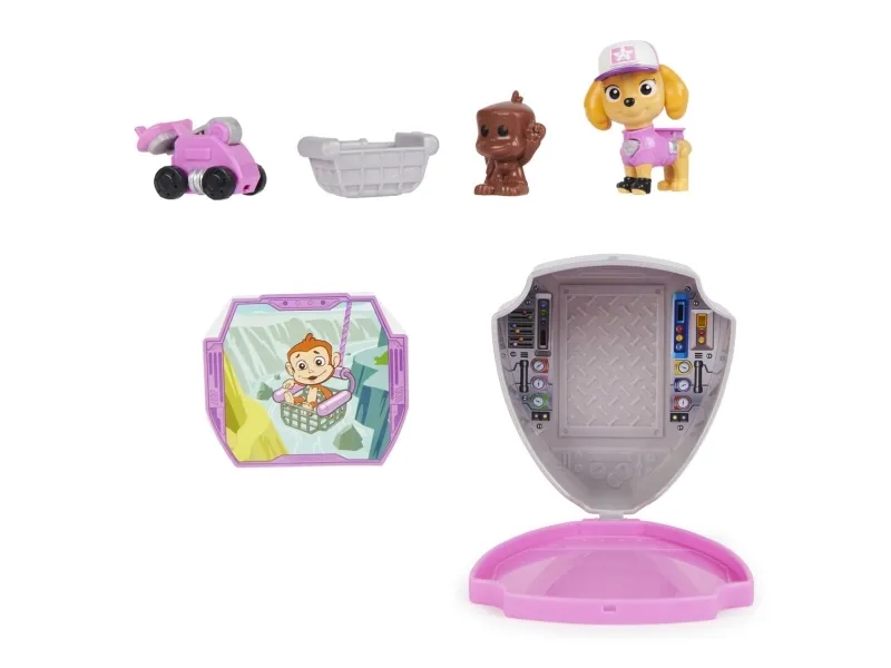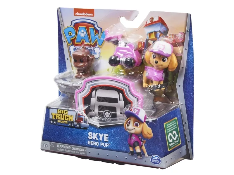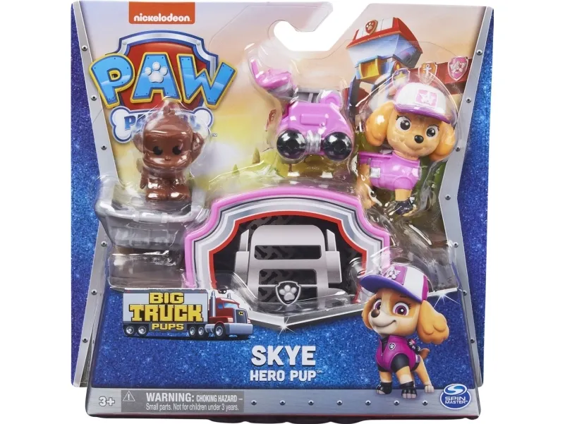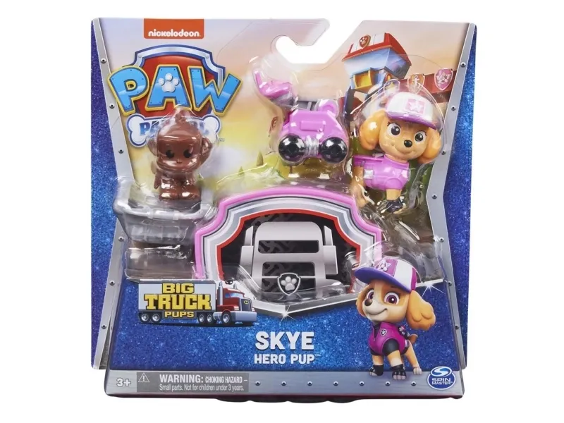 Tag med PAW Patrols Skye på spændende redningsmissioner og genoplev dine yndlingsøjeblikke fra PAW Patrol Big Truck Pups-serien. Dette eksklusive Skye-figursæt har realistiske detaljer og inkluderer en dyreven at redde, noget tilbehør med redningstema og en fantastisk clip-on drone, der kan fastgøres til hendes rygsæk og derefter startes med et tryk på en knap. Når problemerne melder sig, skal du tænde for redningsdronen for at forberede Skye til handling. Når det er tid til en spændende redning, skal du trykke på mærket på Skyes bryst for at affyre redningsdronen, overvinde forhindringer og hjælpe med redningen. Efter redningsaktionen kan du lade som om du ser handlingen på Mobile Command Pod, der fungerer som en taske til dit legetøj, når du er på farten. Med PAW Patrol legetøj kan børn udforske deres fantasi og udvikle deres motoriske færdigheder gennem leg, mens de genoplever deres yndlingsscener fra serien, som Mighty Pups og PAW Patrol Movie, eller skabe helt nye eventyr med alle