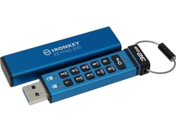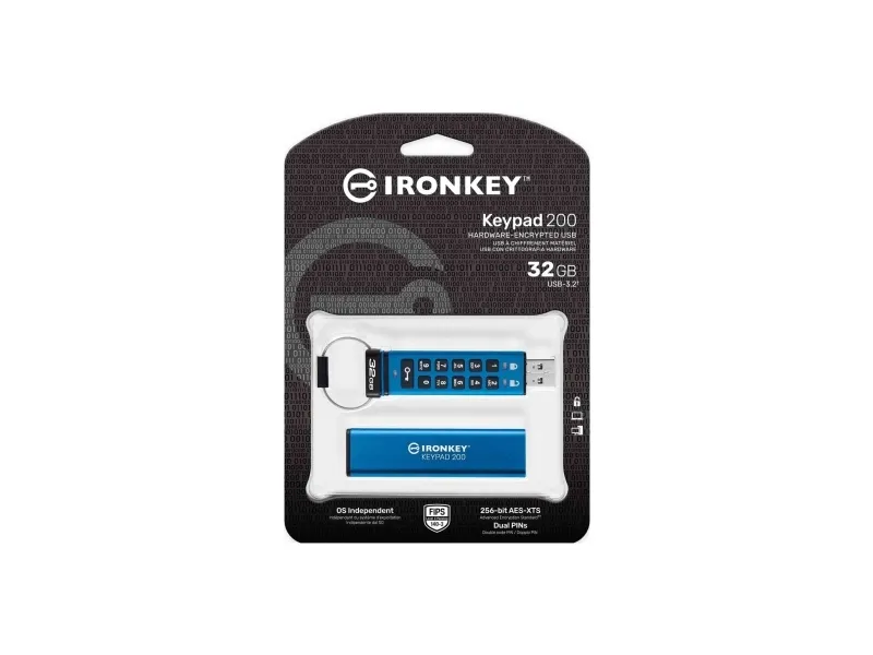 Global and Session Read-Only (write protect) modes Both Admin and User can set a session-based Read-Only mode to protect the drive from malware on untrusted systems. Admin can also set a Global Read-Only mode that sets the drive in Read-Only mode until reset."Kingston Technology IronKey 32GB Keypad 200, FIPS 140-3 Lvl 3 AES-256 Hardware Encrypted. Capacity: 32 GB, Device interface: USB Type-A, USB version: 3.2 Gen 1 (3.1 Gen 1), Read speed: 145 MB/s, Write speed: 115 MB/s. Form factor: Sleeve. Keypad integrated, Password protection. Weight: 25 g. Product colour: Blue