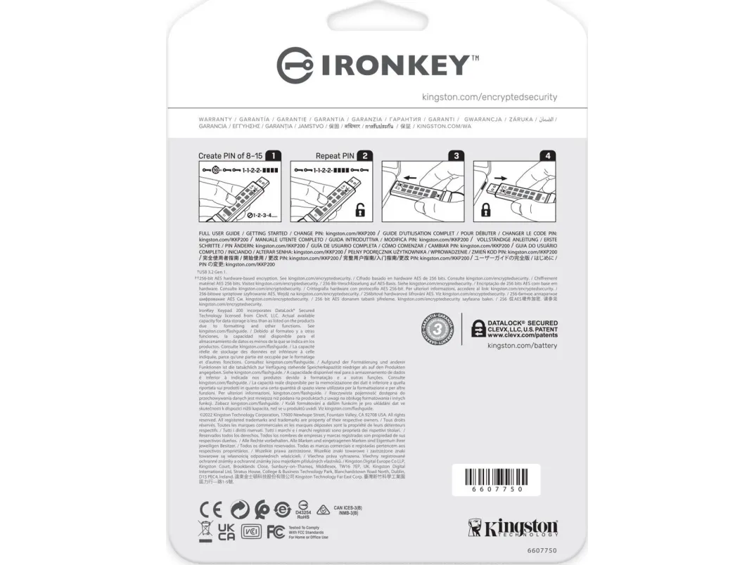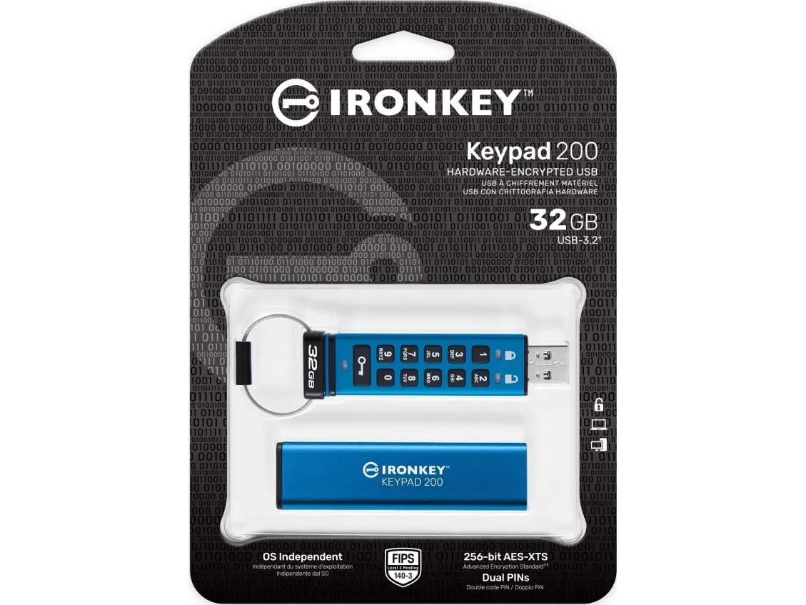 FIPS 140-3 Level 3 Validated with XTS-AES 256-bit hardware encryption The Kingston® IronKey™ Keypad 200 series are OS-independent hardware-encrypted USB Type-A and USB Type-C®* drives with an alphanumeric keypad for easy-to-use PIN access. The KP200 series is FIPS 140-3 Level 3 Validated for military-grade security with enhancements that elevate the bar for data protection and incorporates XTS-AES 256-bit hardware-based encryption. Its circuitry is covered by a layer of special epoxy that makes it virtually impossible to remove components without damaging them; this tough epoxy stops attacks against the semiconductor components.
