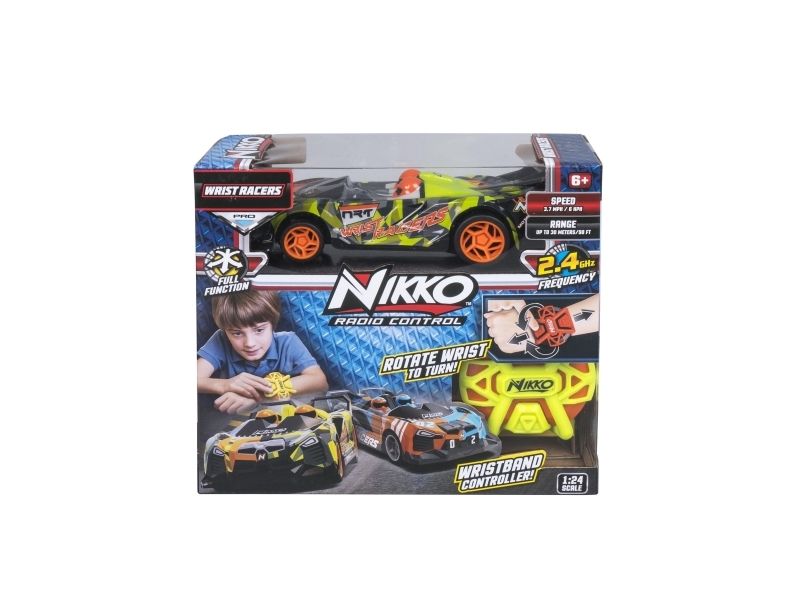 Mit diesem voll funktionsfähigen Rennwagen, der über die Handgelenksfernbedienung gesteuert wird, kannst du gegen deine Freunde antreten. Durch Drehen des Handgelenks kannst du den Rennwagen nach links oder rechts abbiegen. Um vorwärts oder rückwärts zu fahren, drückst du den Knopf. 2 x AAA-Batterien werden für das Fahrzeug und 3 x LR03-Batterien für die Fernbedienung benötigt (im Lieferumfang enthalten). Maßstab 1:24. Ab 6 Jahren.