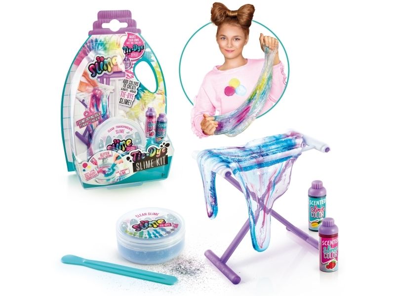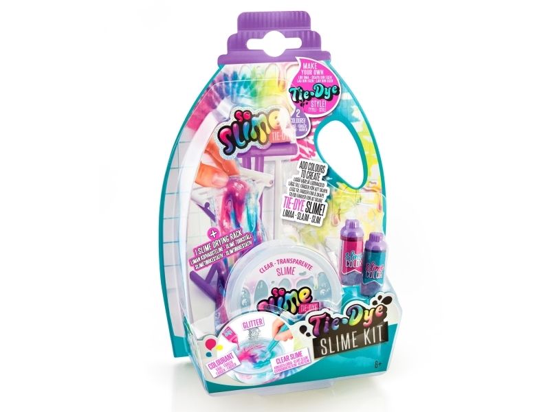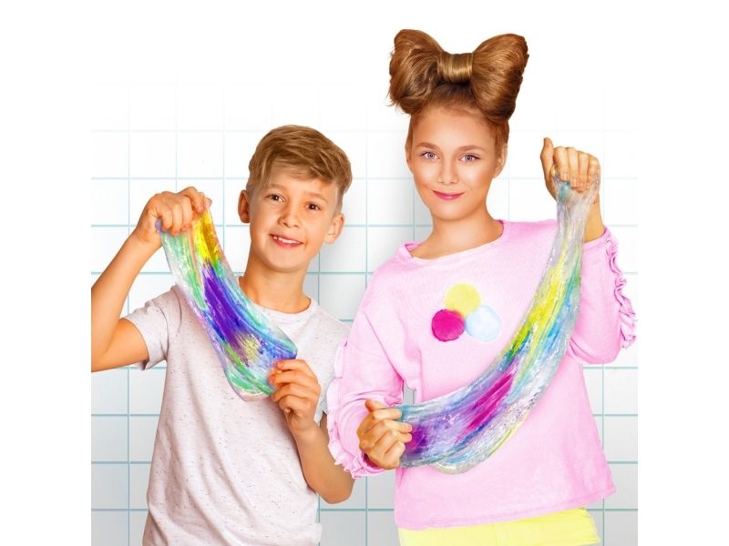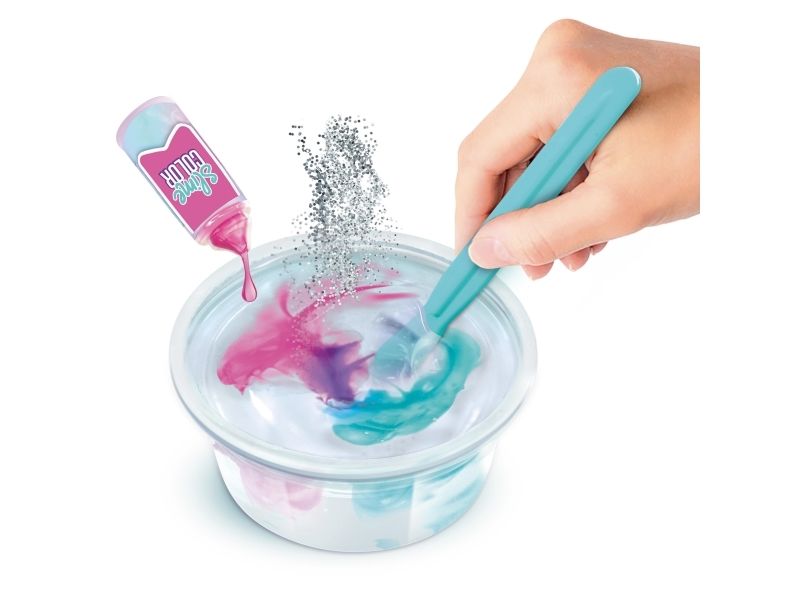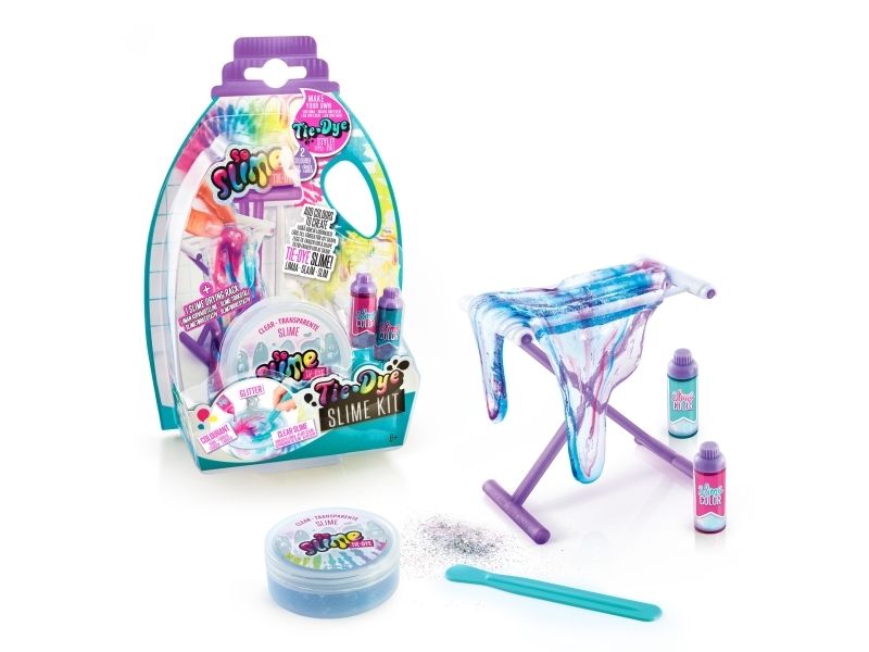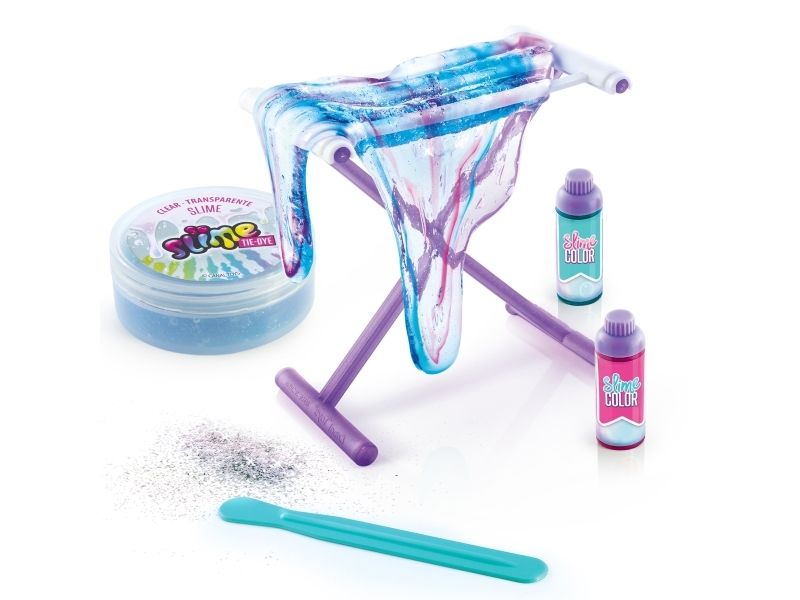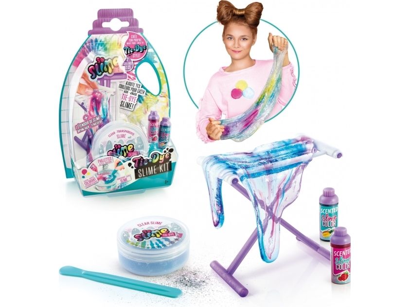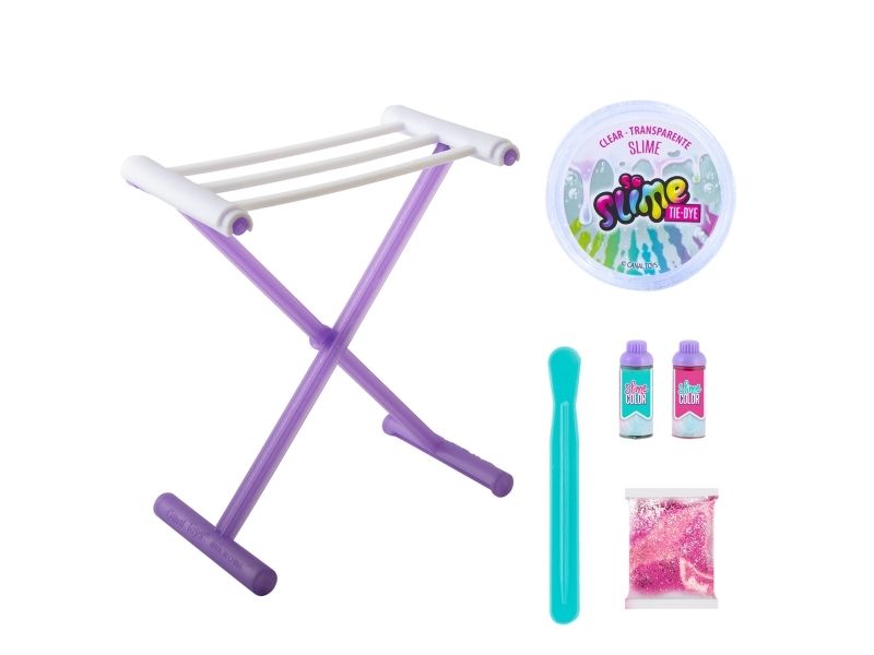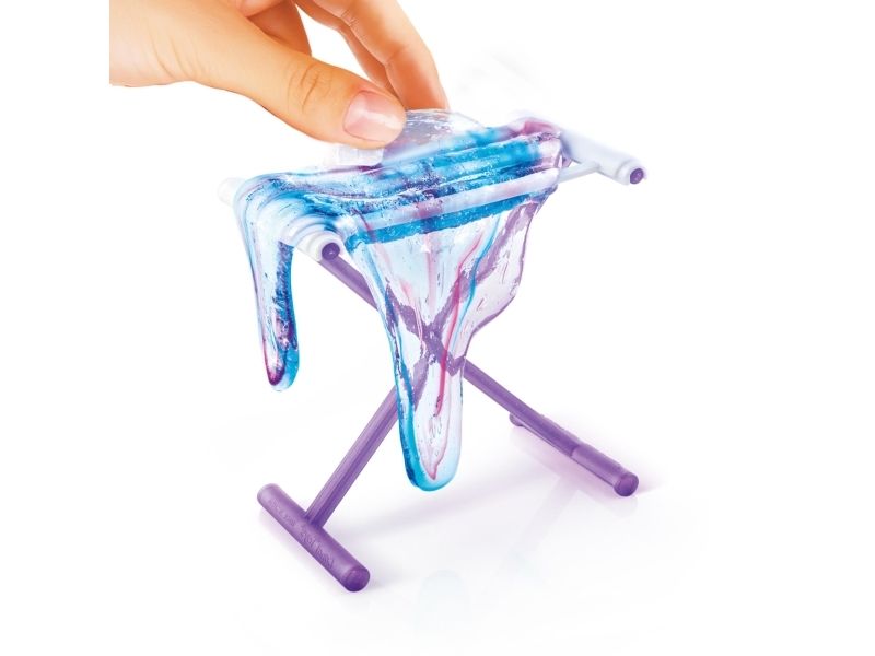 Kreieren Sie Ihren eigenen duftenden Schleim mit Batik-Effekt! Der transparente Schleim ist gebrauchsfertig, wählen Sie einfach die Farbe, fügen Sie den Glimmer hinzu und mischen Sie alles zusammen, um einen Schleim mit einem erstaunlichen Effekt zu kreieren. Sobald Sie den Schleim gemischt haben, strecken Sie ihn und hängen Sie ihn auf das Trockengestell. Dieses Set enthält: - 1 Glas transparenten Schleim - 2 Flaschen Farbe mit Duft - 1 Beutel Glimmer - 1 Trockengestell - 1 Werkzeug