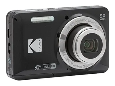 Kodak PIXPRO FZ55 digitalkamera, 16 megapixel, sortFZ55 - FRIENDLY ZOOMLærFZ55 Friendly zoom-kameraet at kende fra Kodak PIXPRO-serien. Denne kompakte Point-and-Shoot-model er en forbedret version og arbejder med et genopladeligt litium-ion-batteri. HD-video med et enkelt tryk på en knap, 28-mm-vidvinkelobjektiv og en lang række funktioner og optagelsestilstande giver dig en grænseløs kreativitet. Kodak PIXPRO Digital kamera - fortæller dig din historie.5 x optiskzoomKAN DU KOMME HELT TÆT PÅFZ55giver dig en kæmpe 5x zoom med slankt design. Med dette brugervenlige kompaktkamera kan du zoome så tæt på overalt, som du har lyst til.28 mmvidvinkelI BILLEDE - HVER GANGTaghele billedet med den praktiske 28 mm vinkel linse. Du skal kun oprette og tage det foto eller den video, du vil optage, i billedet. Du vil blive begejstret over den enkle og effektive effekt, som denne Friendly zoom-model har.Indstillinger af den automatiskeregistreringSMIL OVERALTDisseindstillinger gør forskellen på dine f
