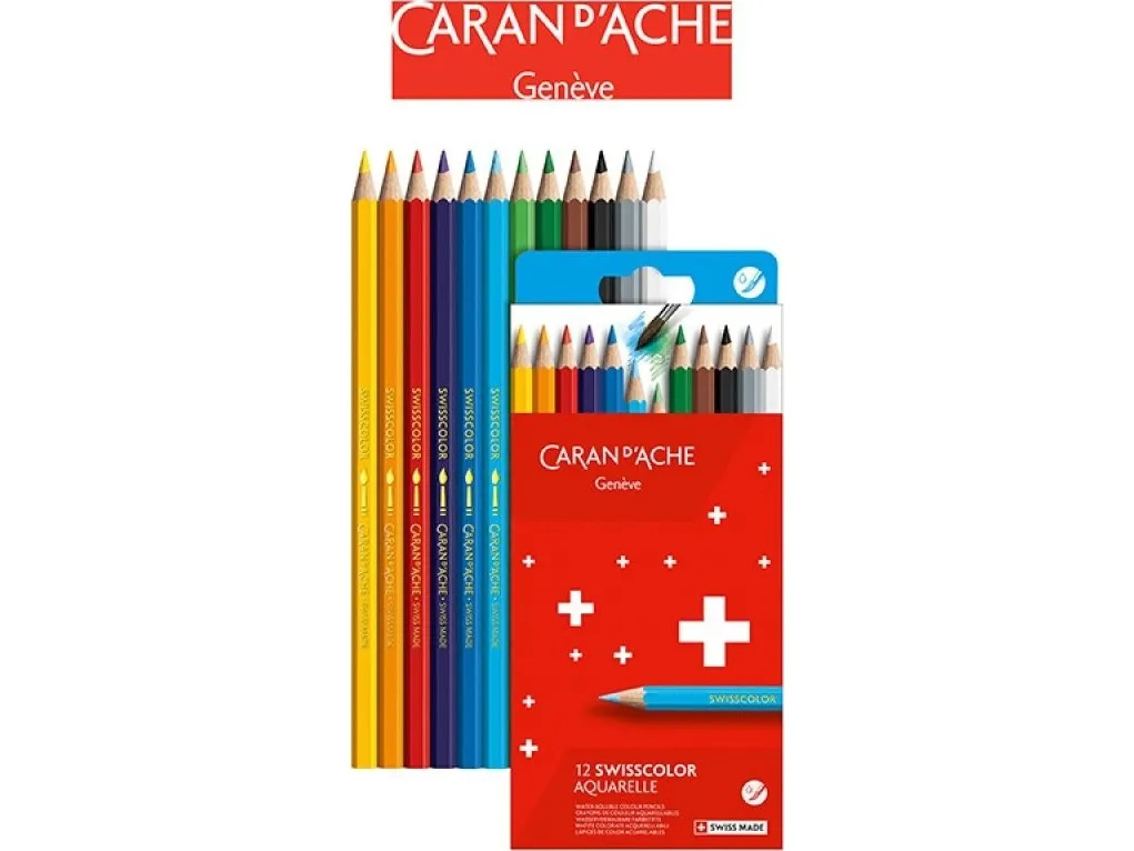 CARAN D'ACHE Buntstifte Swisscolor Aquarelle,12er Kartonetui wasservermalbar, aus Zedernholz, hexagonaler Schaft, - 1 Stück (1285.812)