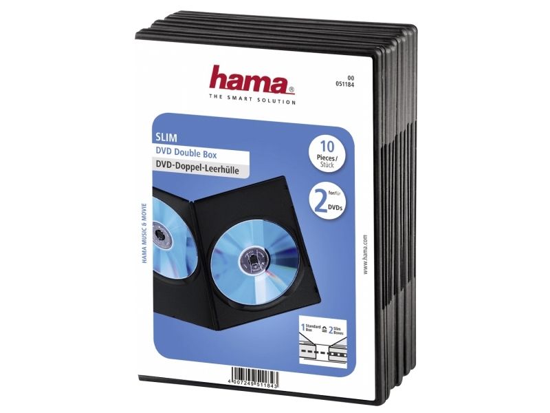 The Hama DVD-ROM Slim Double Box is designed for convenient storage of DVDs. This storage solution can hold up to 2 DVDs, ensuring that collections remain organized and protected. Each purchase includes a package of 10 boxes, making it simple to keep multiple DVDs safe while maintaining a slim profile that conserves space.