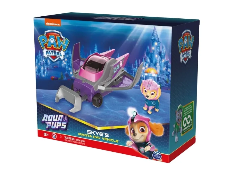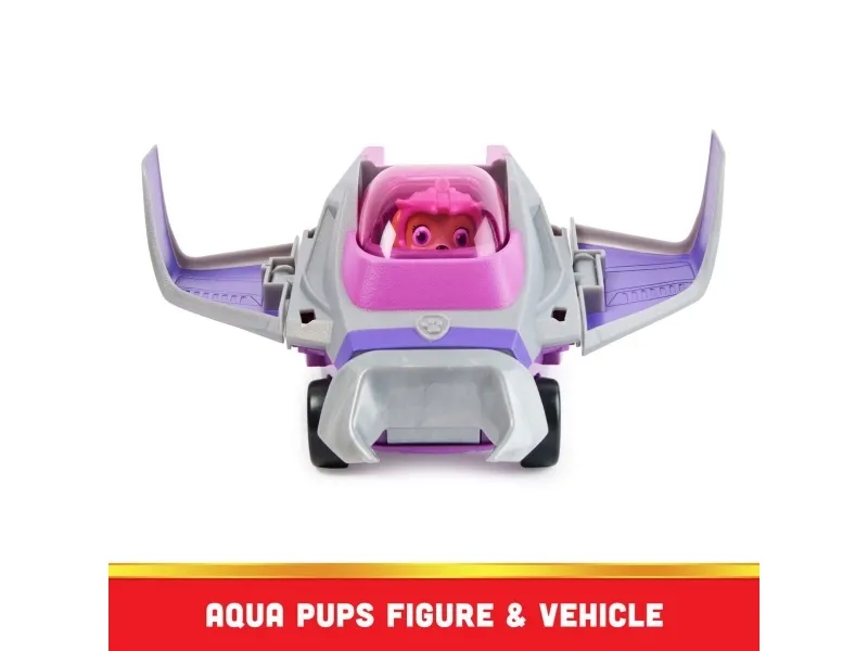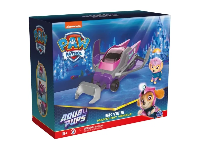 Team up with Skye, for some action packed rescue missions, in her Aqua Pups – Manta Ray Rescue Vehicle! Suited in her pink Aqua Pups wetsuit and helmet, Skye is ready for supercharged rescues in the pretend sea! Skye’s Manta Ray Vehicle features an exciting transformation! Simply place Skye in the vehicle cockpit and slide the canopy shut, to activate the wing flip and horn actions, transforming her vehicle into rescue mode! When there’s trouble, quickly transform into rescue mode, then speed off to the rescue! Create PAWsome adventures with Skye’s Manta Ray Rescue Vehicle! Then, for even more exciting series-inspired missions, collect all the Aqua Pups figures and toy vehicles, (sold separately) for endless hours of action-packed adventures! With PAW Patrol toys, kids can explore their imaginations and develop their motor skills, through pretend play, as they bring their favorite scenes from the show to life! PAW Patrol action figures, toy cars, playsets and stuffed animals are the perfect toys for boys and girls aged 3 and up, so bring home the excitement of the PAW Patrol: Aqua Pups!
