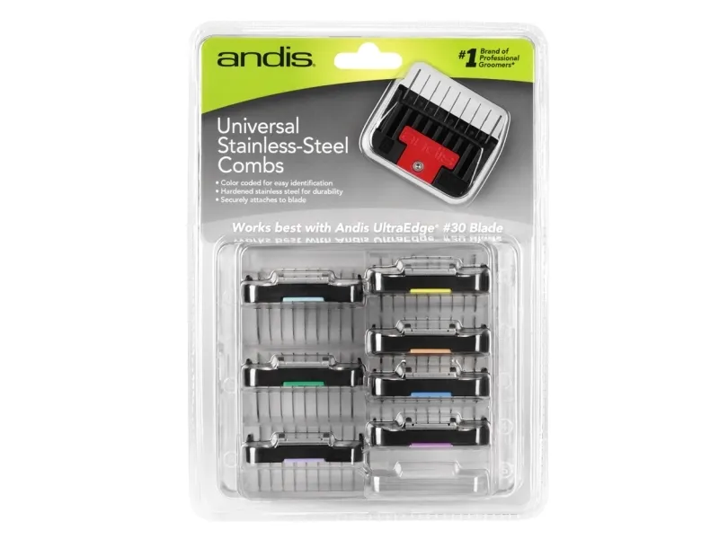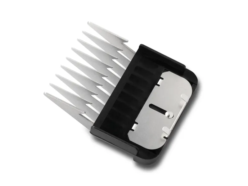 Farbcodierte Abstandshalter aus rostfreiem Stahl, die am Trimmer befestigt werden. Passend für #10 und #30 Klingen. Wählen Sie aus acht verschiedenen Längen 3mm, 6mm, 10mm, 13mm, 16mm, 19mm, 22mm und 25mm. Aufbewahrungsbox inklusive.