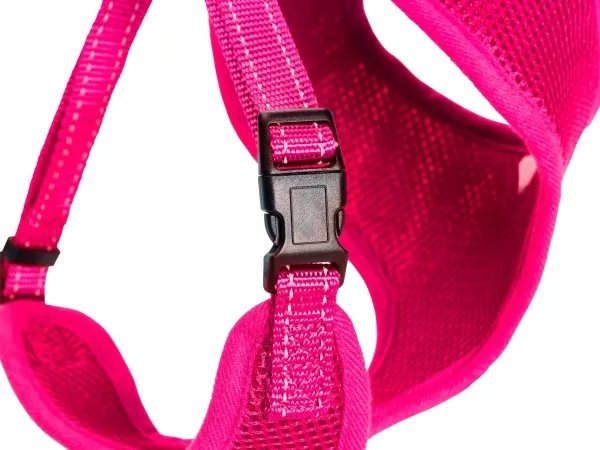 Weiches, bequemes und luftiges Mesh-Gurtzeug. Im Brustbereich verstellbar. Die Gurte haben eingewebte Reflektoren und passen zu den anderen Produkten aus der Iris-Reihe. Sehr einfaches An- und Ausziehen, perfekt für kleine Hunde.