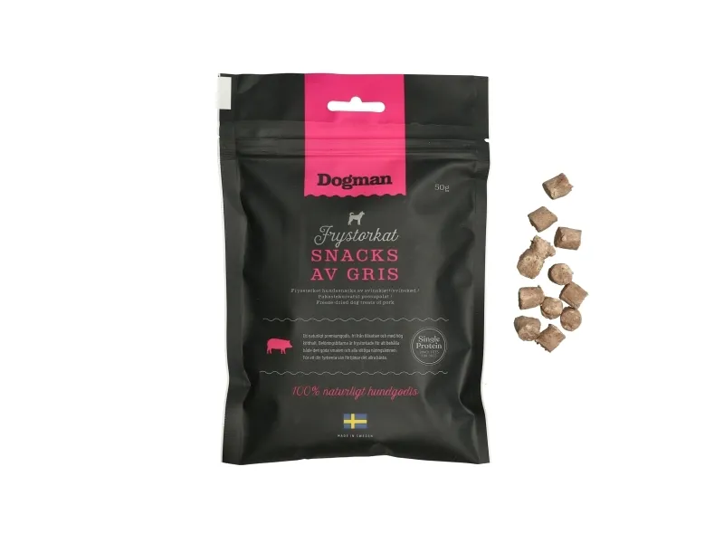 Gefriergetrocknetes 100% natürliches Hundeleckerli aus zartem Schweinefleisch als einzigem Fleischrohstoff. Leckere Belohnungsstücke, perfekt für wählerische oder sensible Hunde! Getreide- und glutenfrei und ohne Zuckerzusatz. Wird als Belohnung zusammen mit einem Balancer gegeben