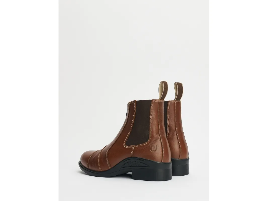 Hübsche Jodhpur aus weichem Leder mit hohem Komfort und rutschfester Sohle. Reißverschluss vorne und Gummizug an der Seite