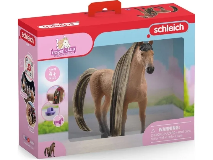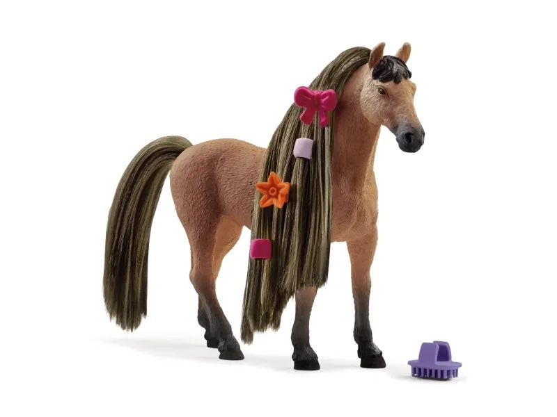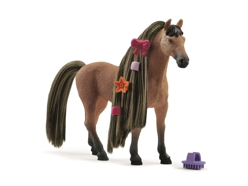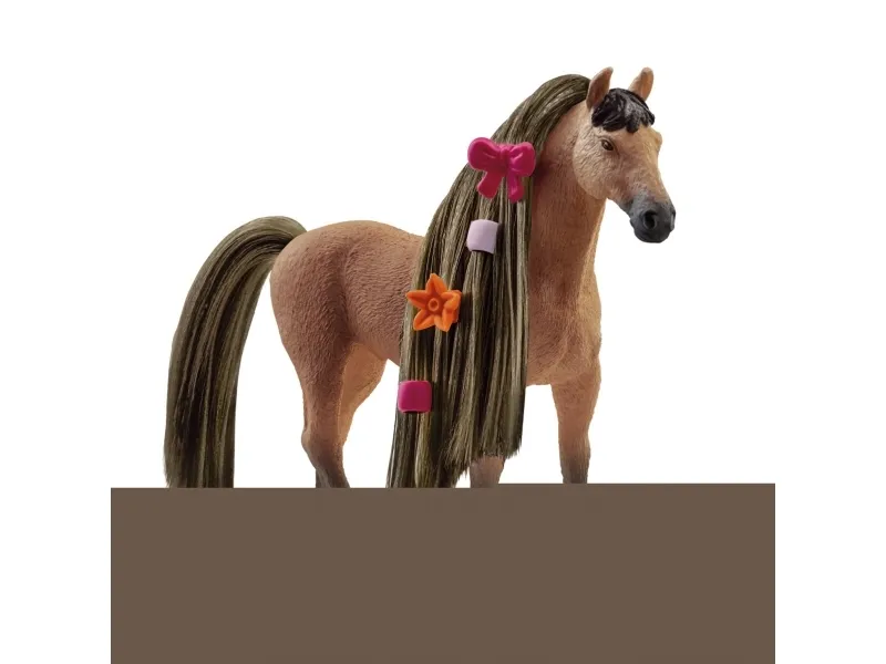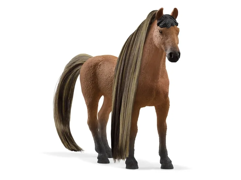 The magnificent Akhal-Teke stallion Beauty Horse has the typical sand-colored coat of his desert home. But he wasn’t always as fussy about his grooming. Now he’s with you, you can give your fullest attention to his beautiful long mane! If you comb it carefully beforehand, you can make amazing braided hairstyles. The hair accessories are ready and waiting for the final styling.