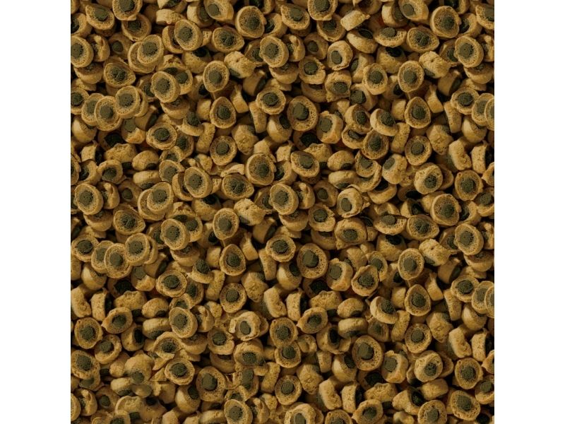 Der Ring enthält eine Mischung aus Kräutern, hochwertigem Eiweiß und Fett, während der Kern des Granulats bei niedrigerer Temperatur extrudiert wird und wichtige Vitamine, Mineralien und Algen zur Stärkung des Immunsystems enthält.