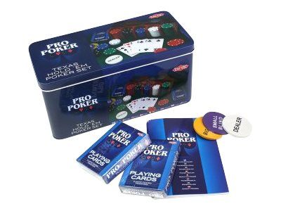 Pro-player quality Texas Hold’em poker set in a stylish tin case!
