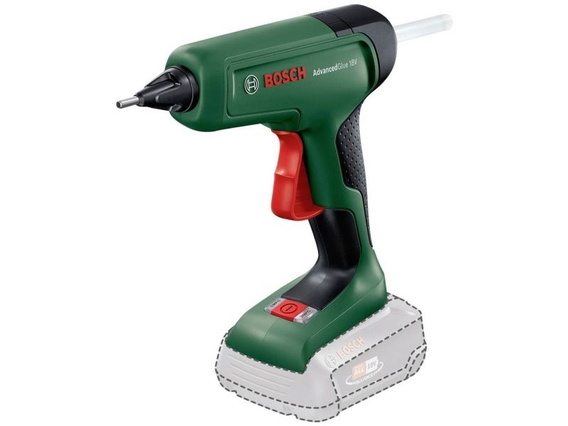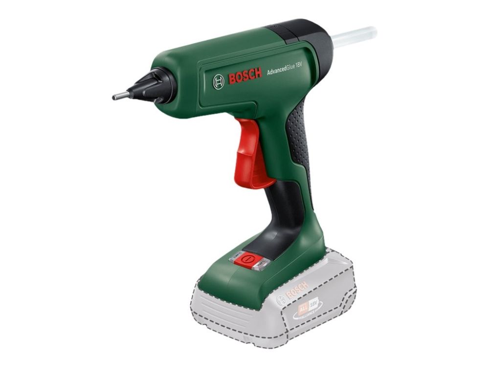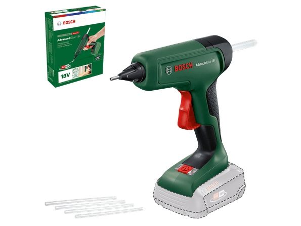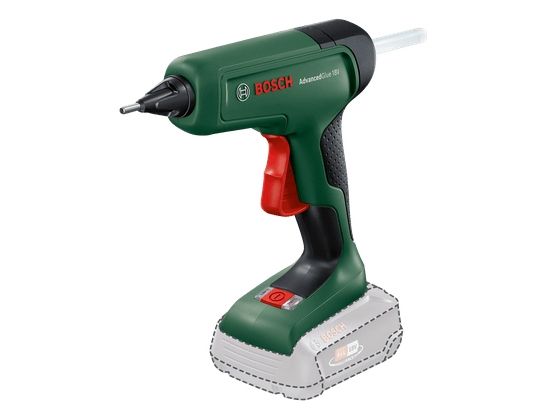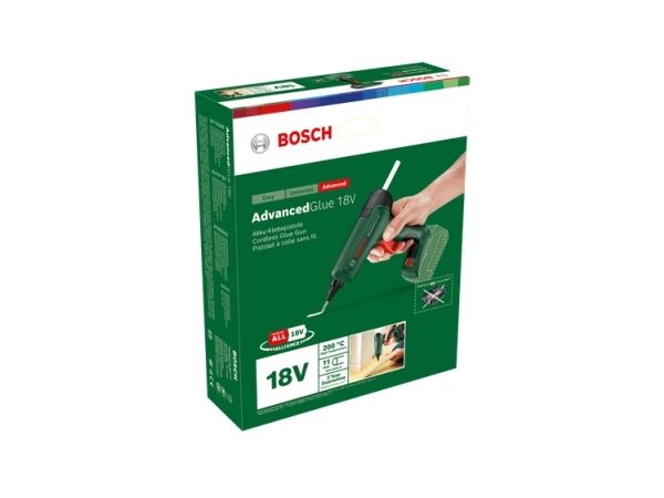 The AdvancedGlue 18V is a powerful, cordless hot glue gun that matches the strong performance of a corded tool and is compatible with the Bosch 18V battery system. In just 90 seconds, the gun is heated up and ready for use. It provides optimal adhesive bonding for perfect jointing as well as sufficient correction time thanks to Bosch's constant, high-temperature heating technology. With dual-temperature mode, 200°C provides maximal adhesion on DIY or repair jobs while 130°C is ideal for heat-sensitive project work. This smart tool saves energy too, switching off when it detects inactivity.