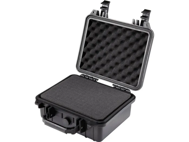 Outdoor-kuffert IP67 270 x 250 x 125 mmManuelt trykudligningsventil · Udtageligt skumindlæg Praktiske snaplåse og øskner til en sikker lukning. Den ideelle løsning til opbevaring og transport af følsom elektronik, modeller, måleteknik, værktøj, kabler, computere og musiktilbehør.Skumindlæg kan tilpasses præcist til dine behovDetaftagelige skumindlæg med gitterlinjer kan tilpasses individuelt til kufferten indhold. På den måde kan det polstrede rum beskytte enhederne mod faldskader.
