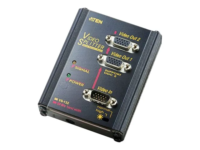 Der Grafik-Splitter VS132A ist ein Signalverstarker, der das Bild einer Signalquelle auf 2 Ausgabegerate vervielfacht. Das Gerat lasst sich auf bis zu drei Ebenen in Kaskade schalten, wodurch bis zu 8 Bildsignale auf Entfernungen von bis zu 30 m zur Verfugung gestellt werden konnen. Diese Eigenschaften verwandeln das Gerat in ein optimales Werkzeug fur Ubertragungssysteme an das Publikum. Der VS132A stellt die beste Wahl dar, wenn es darum geht, hochqualitative VGA-, XGA-, SVGA-, UXGA-, QXGA- oder Multisync-Grafiksignale problemlos uber grosere Entfernungen zu ubertragen.