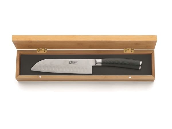 Die Klingenlänge beträgt 17,5 cm, das Gesamtmesser ist 30 cm lang. Das Messer wird in einem luxuriösen Holzetui geliefert, das ein noch luxuriöseres Aussehen und optimalen Schutz bietet. Es wird empfohlen, dieses Messer von Hand zu waschen. Rockwell-Härte von 60 (+/- 2) HRC.