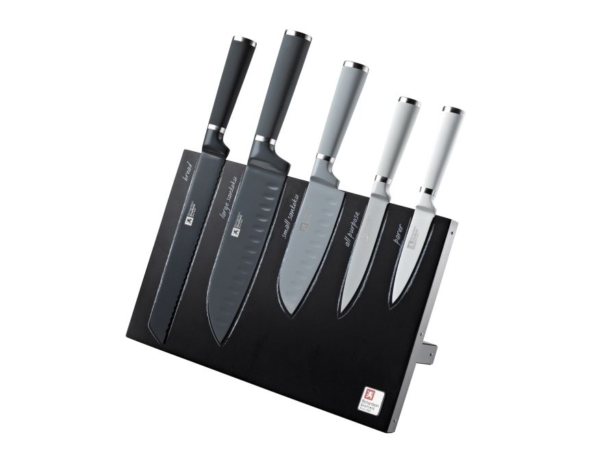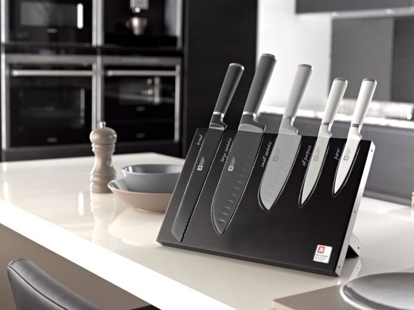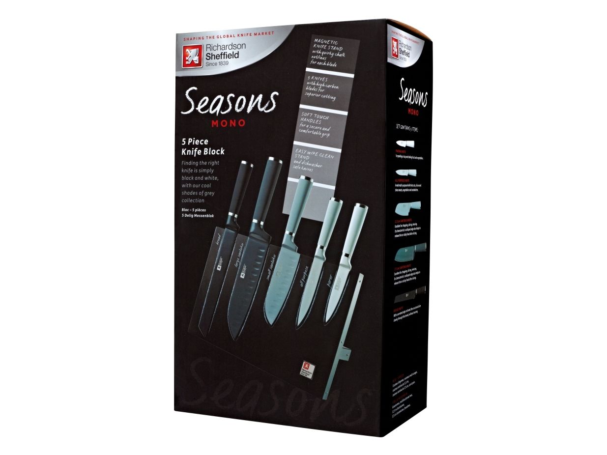 Die Seasons Messer sind schlank, minimalistisch und skurril. Die Töne der Farbpalette Schwarz-Weiß strahlen Ruhe aus. Die Klinge besteht aus rostfreiem Stahl mit hohem Kohlenstoffgehalt und ist mit einer Antihaftbeschichtung versehen.