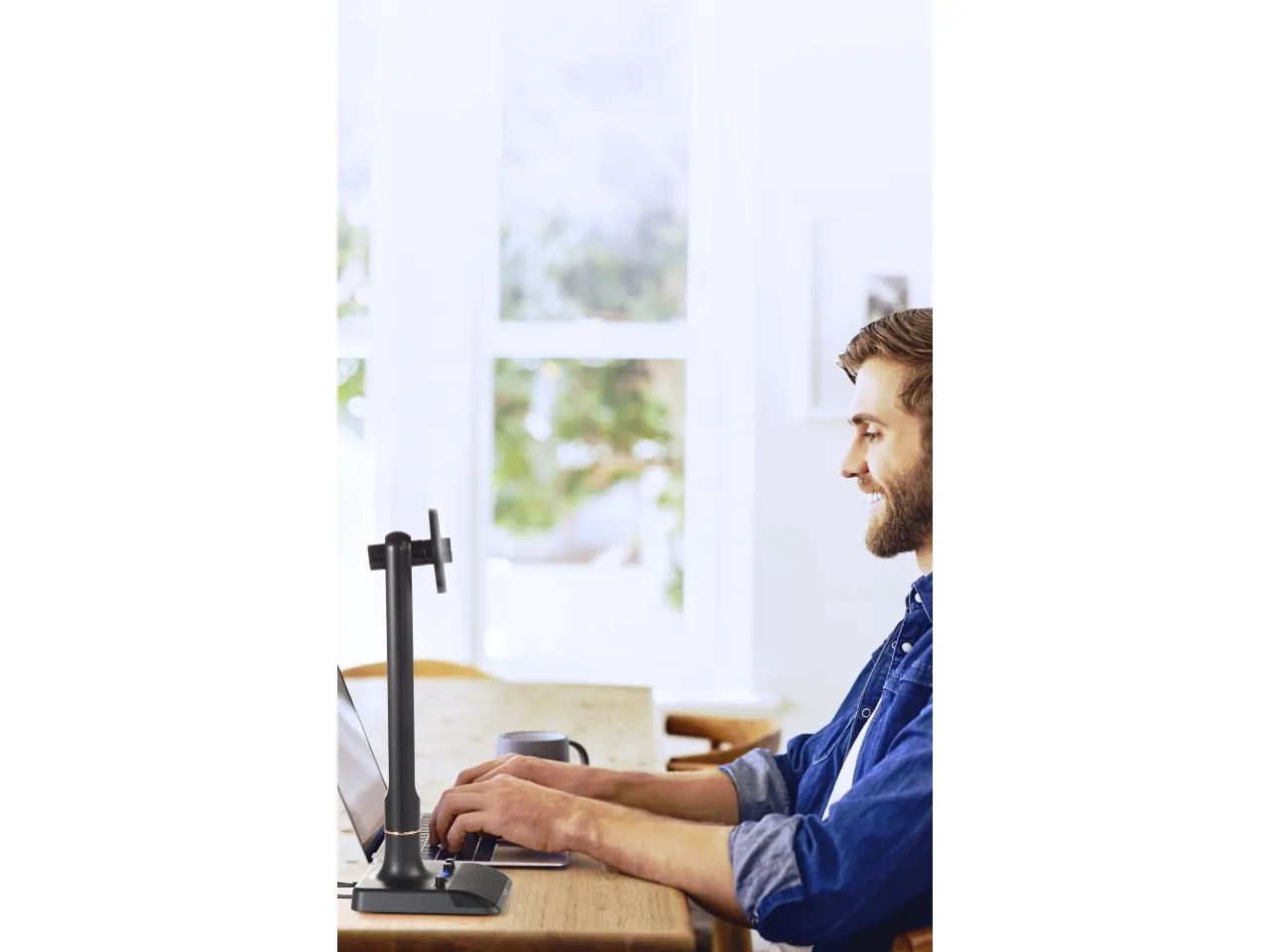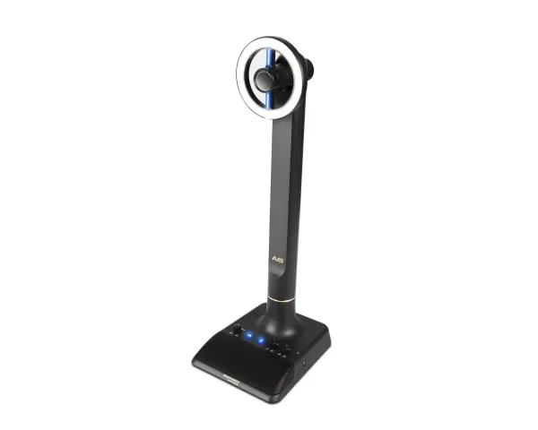 The AVS features a full HD webcam compatible with H.264 video compression, a high-quality 48kHz/16-bit USB condenser boundary microphone conveniently integrated into the base of the unit, and an LED light ring, daylight-balanced, with both cool and warm filter accessories for the look of a studio production. The Marantz AVS is a unique, all-in-one broadcast tool that is designed for live-streaming, video calling and gaming applications. It is compact and simple, perfect on a desktop, and the lightweight design makes it portable enough to take on location.
