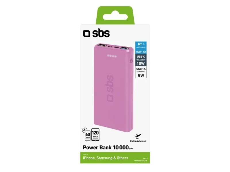 SBS TTBB10000FASTP, 10000 mAh, Lithium-Polymer (LiPo), Rosa