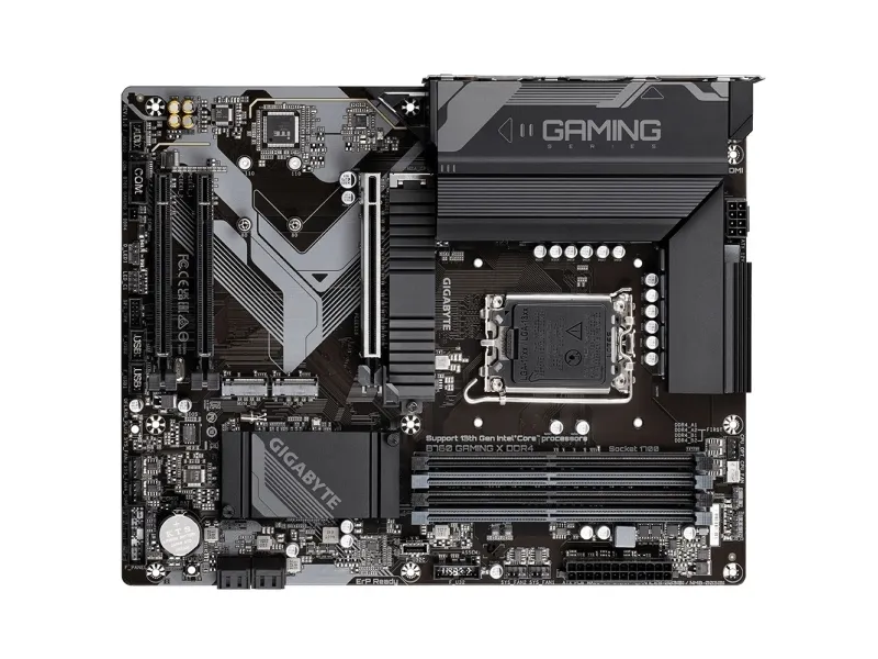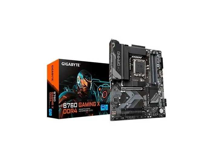 Elevate your computing experience with GIGABYTE's renowned motherboard series: AORUS, AERO, and GIGABYTE. Featuring innovative designs and advanced features, these boards offer exceptional performance and reliability. Whether you're a gamer, content creator, or professional, our series cater to your needs, ensuring uncompromising quality and cutting-edgeGIGABYTE B760 GAMING X DDR4 Motherboard - Supports Intel Core 14th Gen CPUs, 8+1+1 Phases Digital VRM, up to 5333MHz DDR4 (OC), 3xPCIe 4.0 M.2, 2.5GbE LAN, USB 3.2 Gen 2. Processor socket: LGA 1700, Compatible processor series: Intel® Celeron®, Intel® Pentium® Gold, Supported processor sockets: LGA 1700. Supported memory types: DDR4-SDRAM, Maximum internal memory: 128 GB, Memory slots type: DIMM. Supported storage drive interfaces: M.2, SATA III, Supported storage drive types: HDD & SSD, RAID levels: 0, 1, 5, 10. Graphics card family: Intel, Graphics card: HD Graphics, Maximum resolution: 4096 x 2304 pixels. USB connector type: USB Type-A, USB Type-C