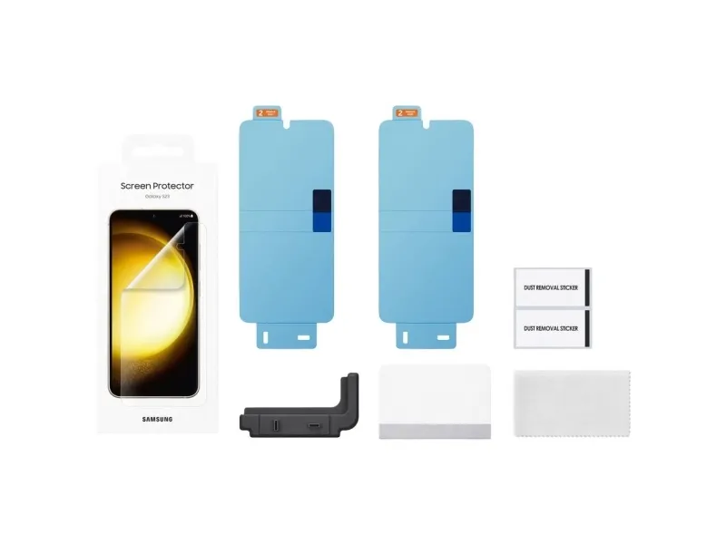 The Samsung EF-US911 screen protector is an ideal accessory for your cellular phone, offering not just protection but also the convenience of a complete cleaning kit for application. This film-type protector is specifically designed to be scratch-resistant, ensuring that your device's screen remains in pristine condition. The package comes with everything needed for a clean, bubble-free application: a microfiber cleaning cloth, dust removal sticker, and a squeegee. Whether you're looking to preserve the resale value of your phone or simply keep it looking as good as new, this screen protector is up to the task.