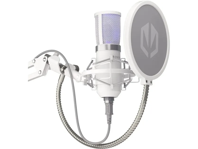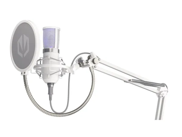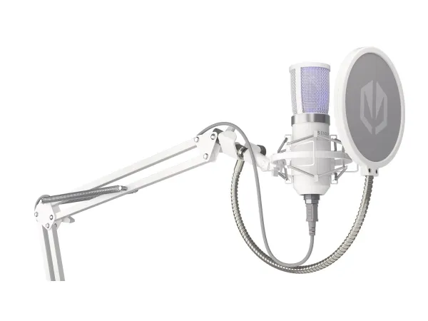 Ideals do exist. Some of them are being born in ENDORFY – just like our Solum Streaming Onyx White.It’s a white microphone with cardioid characteristics and a pop filter that blocks explosive consonants. It also blocks the noise outside and other unplanned sounds during your virtual battles (that’s what a built-in mute button is for). With such a combo, there’s only one three things left: lights, camera and... action!The Solum Streaming Onyx White is a splendid white microphone built for streaming, vlogging, and long conversations with the crew. Its unique, eye-catching design wows at first glance, but it’s the nuanced, warm sound that makes you fall in love with it. Thanks to the cardioid characteristic, the mic picks up sounds from the front only, while the included pop filter blocks out explosive consonants. To put it simply – the Solum Streaming Onyx White impresses with the high-quality, clean audio from the first “Hello there!”.Together with the microphone you also get a stable, handy arm with an anti-shock mount already built-in, making it easy to keep the workspace immaculate. So, camera, ready, action stream!ENDORFY Solum Streaming. Type: PC microphone, Microphone frequency: 18 - 21000 Hz, Bit rate: 24 bit. Connectivity technology: Wired, Device interface: USB, USB connector type: USB Type-B. Product colour: White, Control type: Buttons, Rotary, Mounting type: Table. Power source: USB. Width: 48 mm, Depth: 42.7 mm, Height: 152 mm