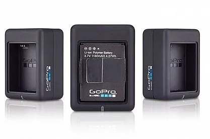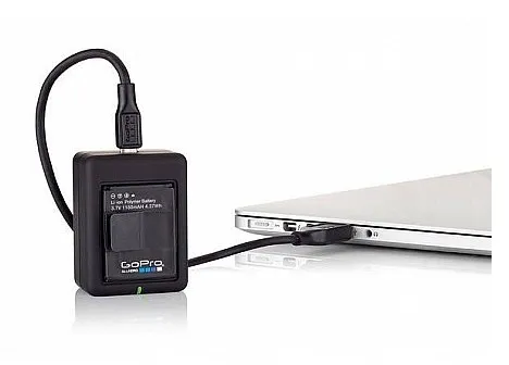 Conveniently charge two GoPro Li-ion batteries simultaneously Power with most standard USB chargers, the GoPro auto or wall charger or a computer Dual LED lights display charging status of both batteries