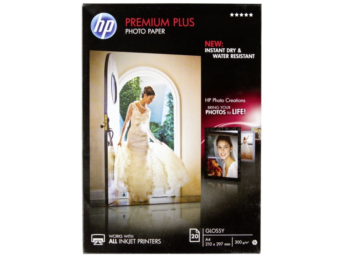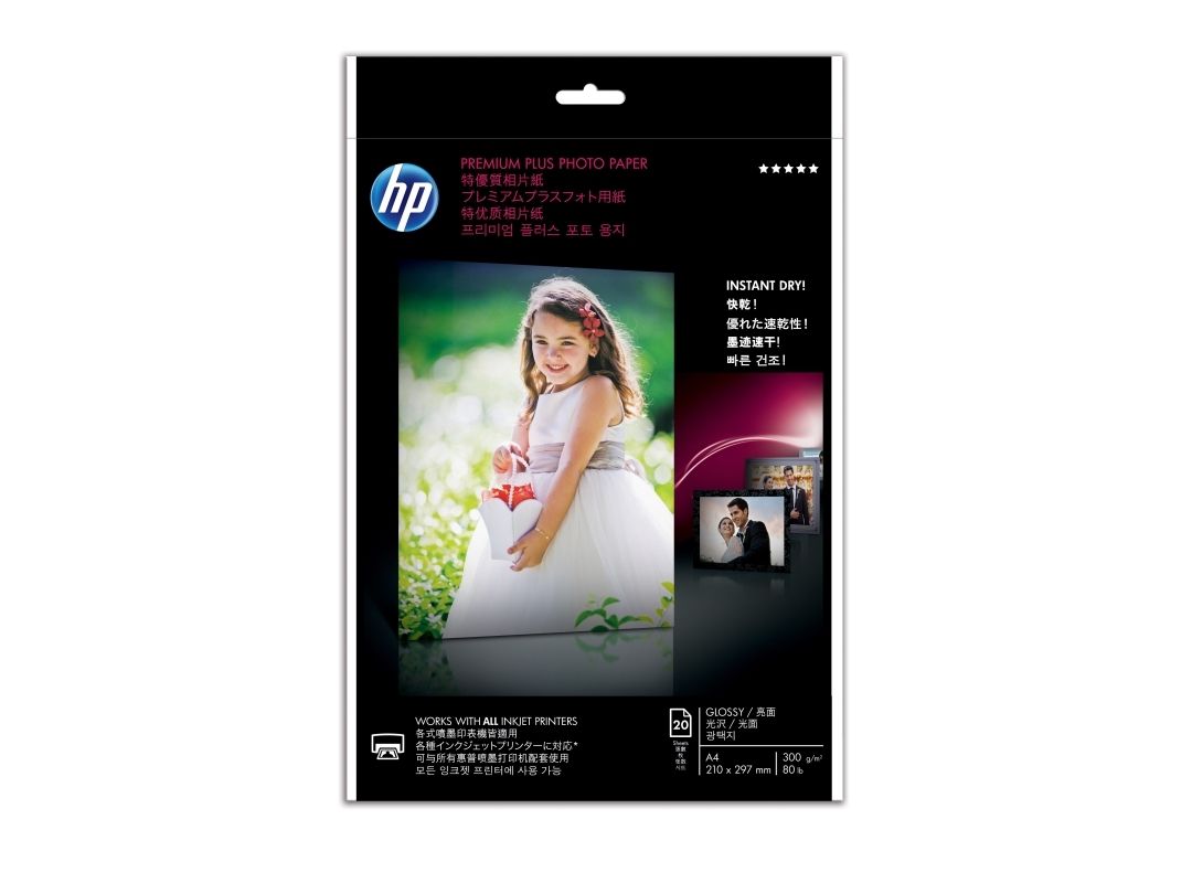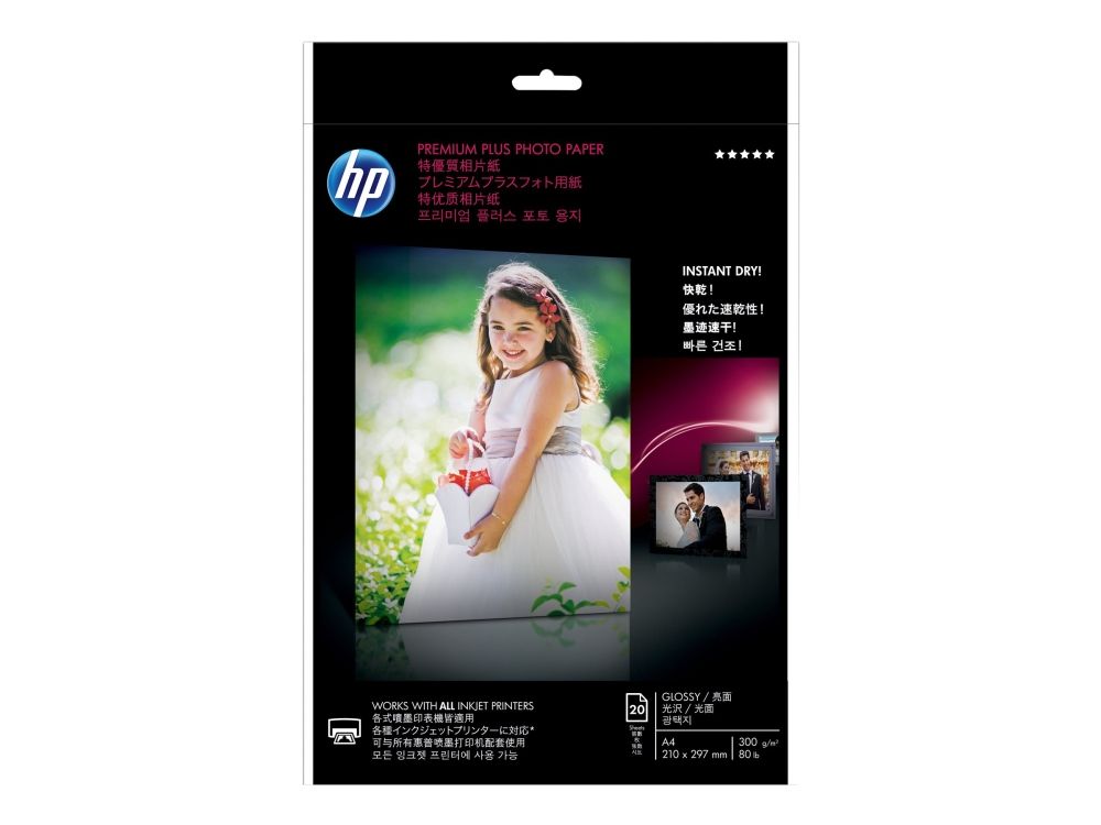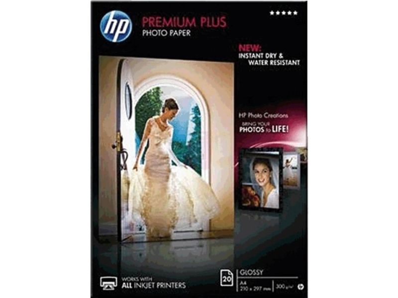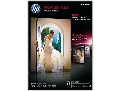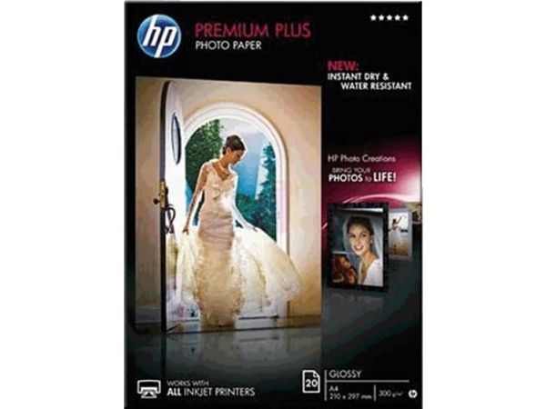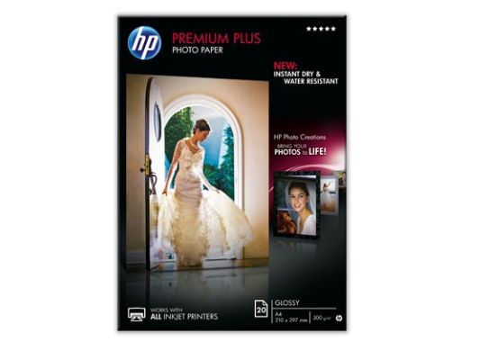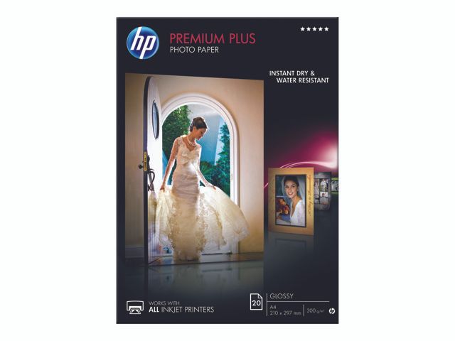 HP Premium Plus Fotopapier glänzend - 20 Blatt/A4/210 x 297 mm, Glanz, 300 g/m², Laser/Inkjet, 20 Blätter, Business, Unternehmen, 15 - 35 °C